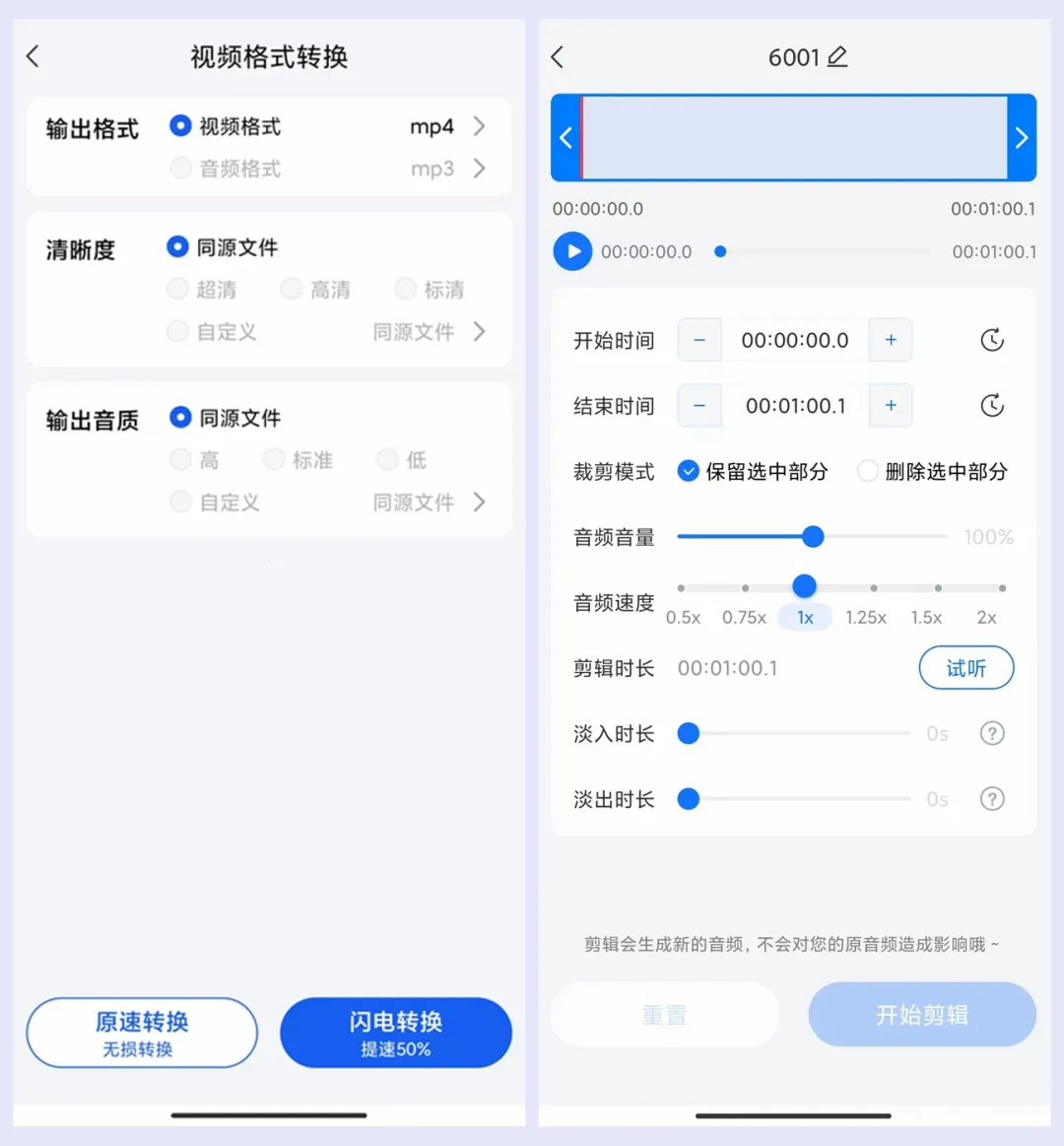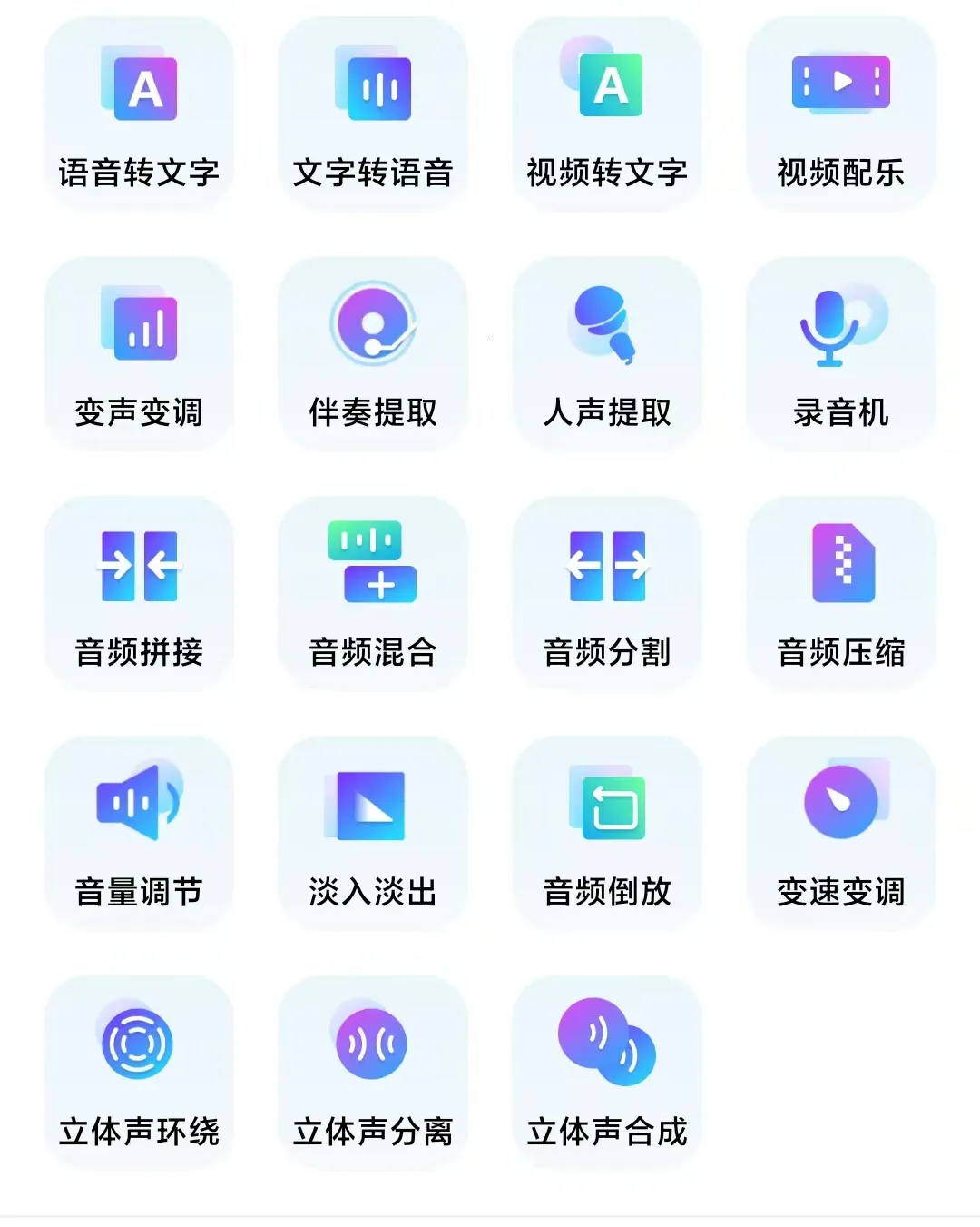 这款工具主要包括了音频格式转换,视频格式转换,音频剪辑,视频提取音频等等。